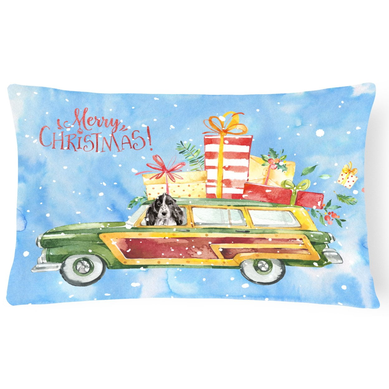 Carolines Treasures CK2450PW1216 Merry Christmas Black Parti Cocker Spaniel Canvas Fabric Decorative Pillow