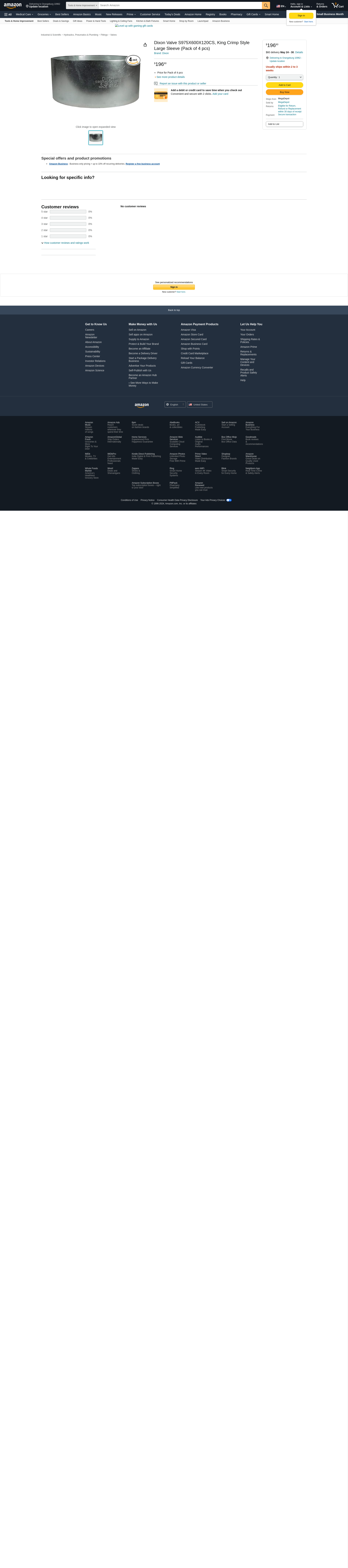 Dixon Valve S975X600X120CS, King Crimp Style Large Sleeve (Pack of 4 pcs)