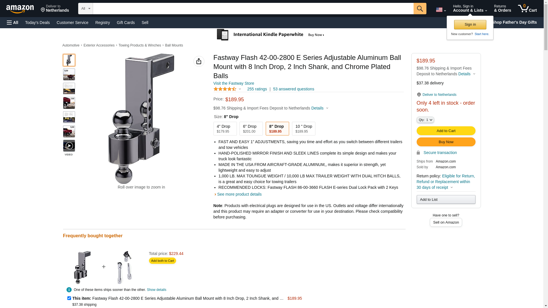 Fastway Flash 42-00-2800 E Series Adjustable Aluminum Ball Mount with 8 Inch Drop, 2 Inch Shank, and Chrome Plated Balls