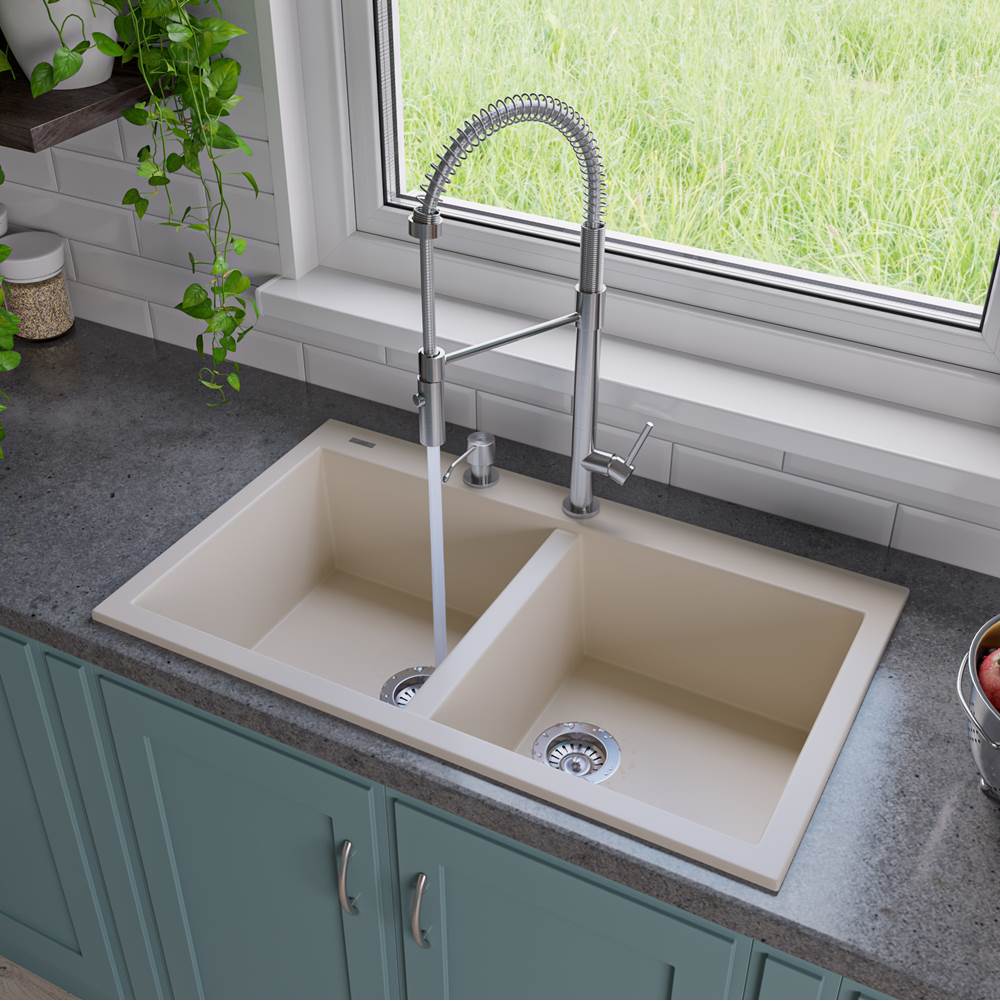 ALFI brand AB3420DI-B Drop-In Double Bowl Granite Composite Kitchen Sink, 34", Biscuit
