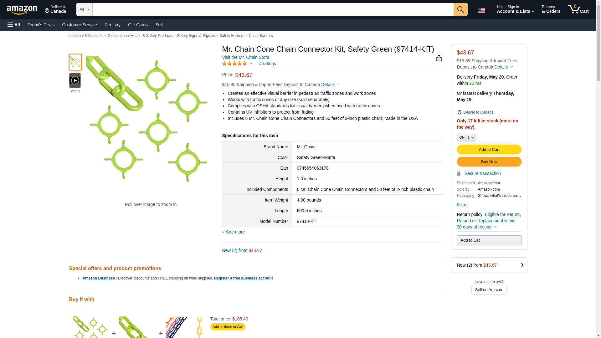 | Feature | Includes 6 Mr. Chain Cone Chain Connectors & Includes 50\' of Mr. Chain\'s 2" Plastic Chain - Safety Green |
