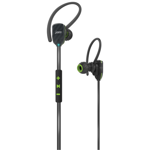 JAM Transit Micro Sport Buds Mini Wireless Bluetooth Earbuds, 10 Hour Playtime, Perfect for Running, Gym, Workout, Hands Free Calling Controls with Mic, Waterproof, Reflective Cord, HX-EP510GR Green