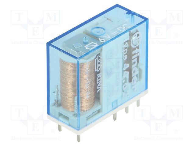 Finder 44.62.9.006.0000 DPDT 10A, 6V DC Coil, Agni Contact, Miniature PCB Relay