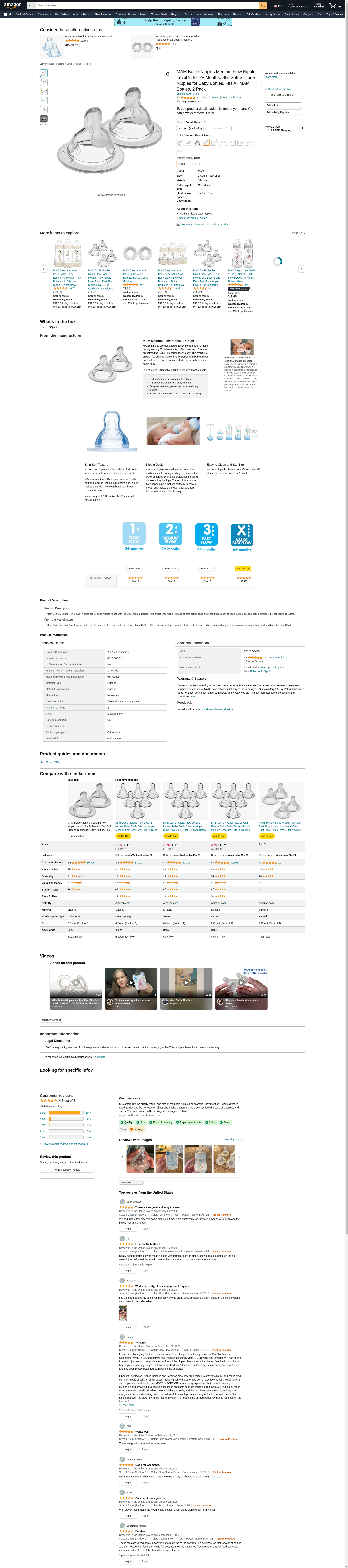 MAM Bottle Nipples Medium Flow Nipple Level 2 (Set of 2), for 2+ Months, SkinSoft Silicone Nipples for Baby Bottles, Fits All MAM Bottles: Maxedbuy.com