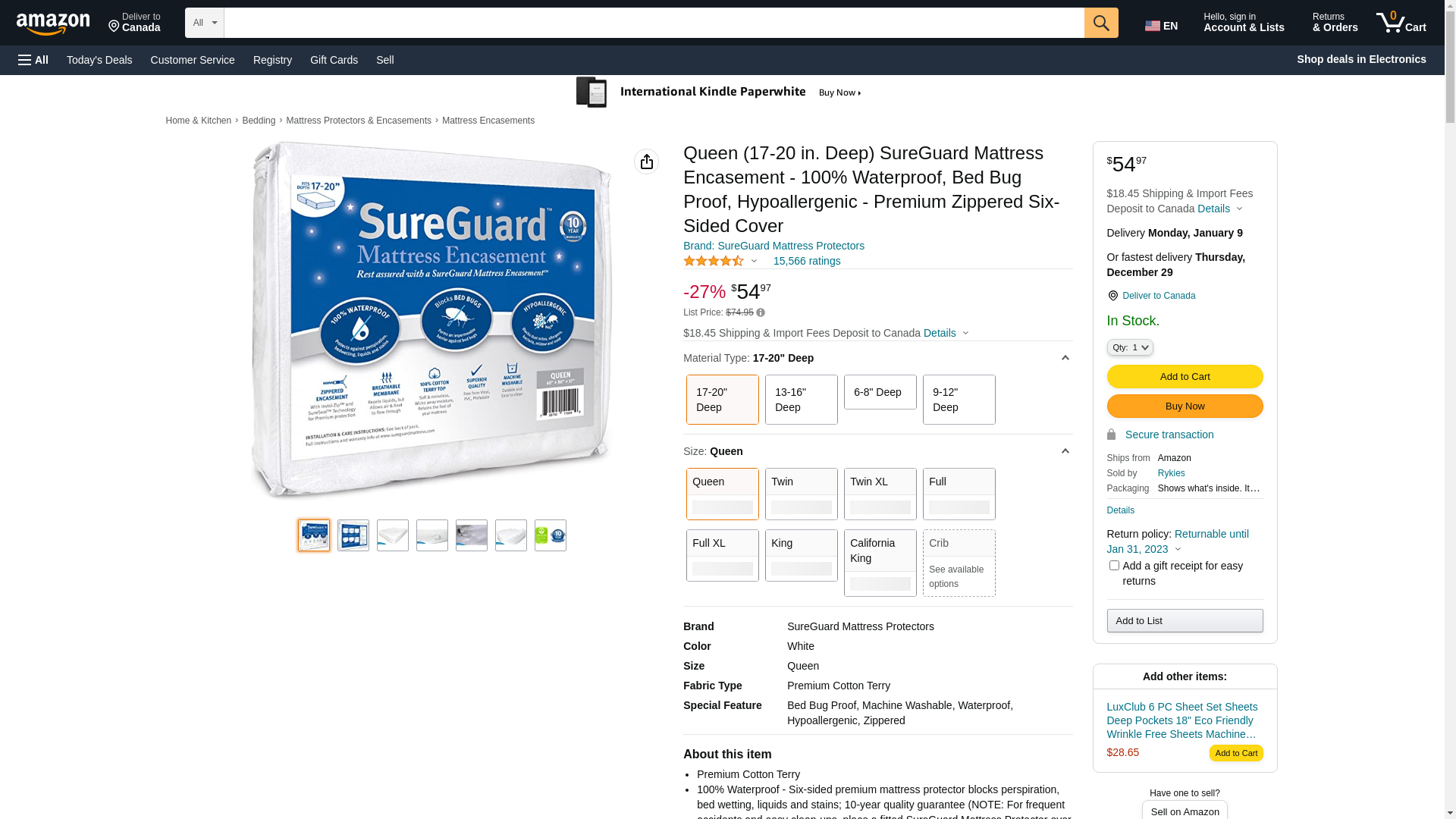 <p><b>Want The Absolute Best Protection for Your Mattress?</b><br>Look No Further than a SureGuard Mattress Encasement</p><p><b>100% Waterproof</b><br>Provides six-sided premium protection against night sweats, urine, liquids and stains - keeping the entire mattress fresh and clean.</p><p><b>Bed Bug Proof</b><br>Super fine zipper with Invisi-Zip and SureSeal technology completely seals off your mattress from bed bugs - best used with SureGuard Pillow Protectors and a SureGuard Box Spring Encasement.</p><p><b>Allergy Relief</b><br>Blocks dust, dirt and dander - prolonging the life of your mattress.</p><p><b>Soft and Noiseless</b><br>The thin, light-weight 100% cotton terry top provides a soft comfortable sleep space, without changing the feel of your mattress.</p><p><b>Breathable and Cool</b><br>The advanced membrane repels liquids, but allows air and heat to flow through - making it perfect for memory foam, and keeping any bed cool and dry.</p><p><b>Simple to Clean</b><br>Machine wash with cool water. Tumble dry low heat or air dry. Do not bleach, iron, or dry clean.</p><p><b>Superior Quality</b><br>Each zippered mattress cover is made with the finest materials and expert workmanship to ensure it protects your mattress, wash after wash. Independently lab tested and GREENGUARD Gold certified.<br>Free from Vinyl, PVC, Phthalate.</p><p><b>Money-Back Guarantee</b><br>When you buy a SureGuard Mattress Encasement, you have 30 days to try it risk-free. If it doesn't work for you, simply return it for a full refund (less shipping costs). In addition, SureGuard offers a 10-year full replacement warranty.<p><b>Add to Cart Now and Rest Assured with SureGuard.</b></p>