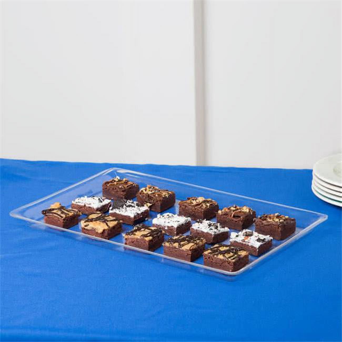 Cal-Mil offers a selection of traditionally designed trays made for the purpose of showing off and serving all sorts of appetizers or desserts at their best quality. The trays can be used in any bakery, cafe, deli, grocery store, catering event or party.Cal-Mil offers trays of the same make in different colors and sizes to choose from. Other trays from Cal-Mil sold separately.- Display Tray- Shallow- BPA Free- Material: Acrylic- Color: Clear-Dimensions:12''W x 18''D x 1''D