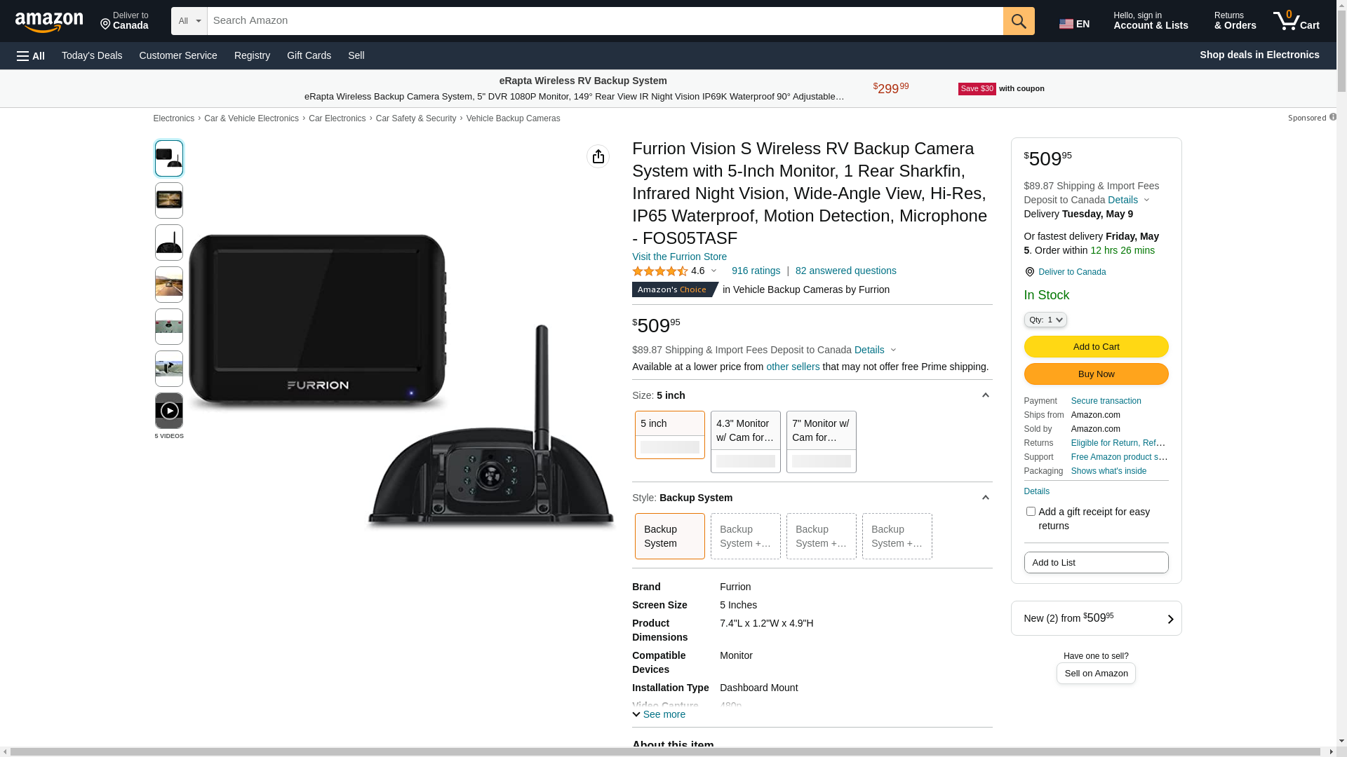 Furrion Vision S Wireless RV Backup Camera System w/ 5" Monitor/Rear Camera