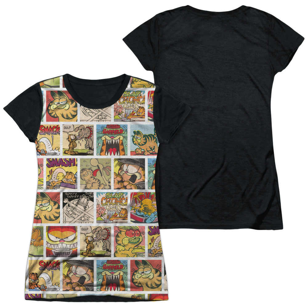 Trevco GAR576-JSBB-3 Garfield & Collage Junior Cap Sleeve Polyster Black Back T-Shirt, White - Large