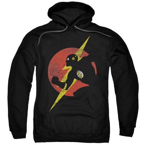 Trevco Jla-Flash Symbol Knockout Adult Pull-Over Hoodie, Black - 3X
