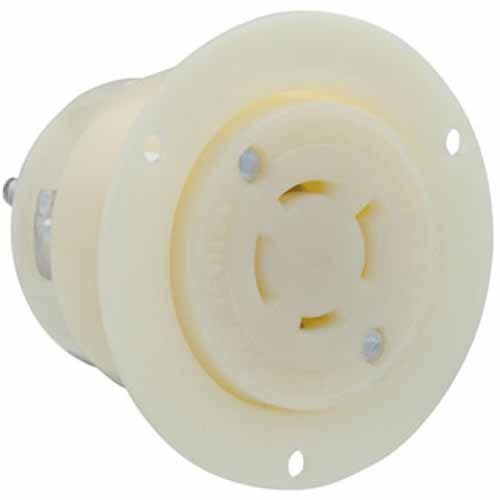 Leviton 2456 - Flanged Outlet Locking Receptacle - 20 Amp - 277/480 Volt 3PY - NEMA L19-20R - Industrial Grade - White