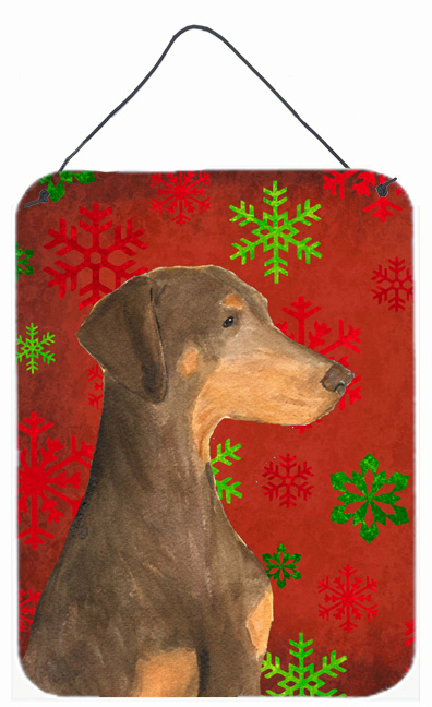 Carolines Treasures SS4686DS1216 Doberman Red and Green Snowflakes Holiday Christmas Aluminium Metal Wall Or Door Hangin