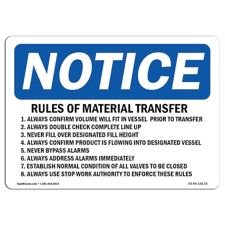 OSHA Notice Sign, Rules Of Material Transfer 1. Always Confirm, 10in X 7in Rigid Plastic