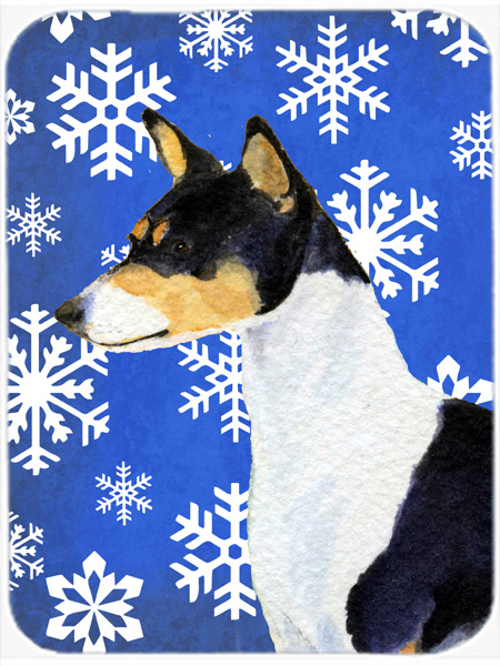 Caroline's Treasures SS4652LCB Basenji Winter Snowflakes Holiday Glass Cutting Board Large Decorative Tempered Glass Kitchen Cutting and Serving Board Large Size Chopping Board