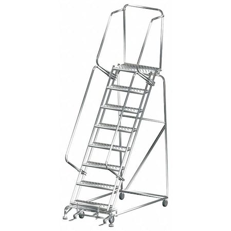 Ballymore Co Inc 8 Step 24"Wx64"D Stainless Steel Rolling Safety Ladder - Perforated Tread