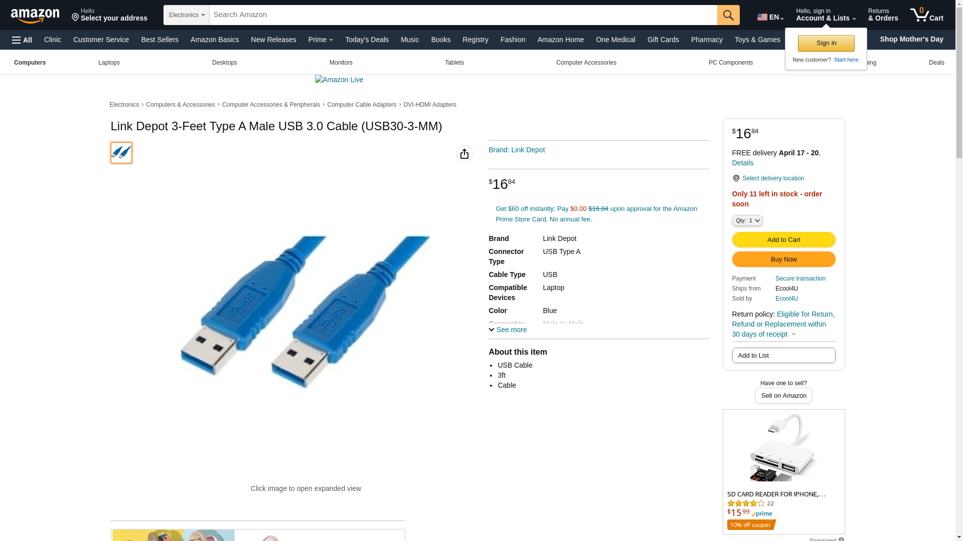 Link Depot 3-Feet Type A Male USB 3.0 Cable (USB30-3-MM)