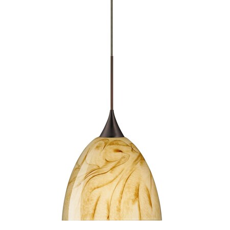 Sasha has a classical bell shape that complements aesthetic, while also built for optimal illumination. Our Halva glass mixes warm colors for earth tone effect, with inner opal and a glossy finish. Swirls and folds of deep brown color are captured inside a tan background, with inner opal and a glossy finish. When the glass is lit the color change is truly unique and mysterious. This blown glass is handcrafted by a skilled artisan, utilizing century-old techniques passed down from generation to generation. Each piece of this dcor has its own artistic nature that can be individually appreciated. The 12V cord pendant fixture is equipped with a 10' coaxial cordset with teflon jacket and quick connect jack. These stylish and functional luminaries are offered in a beautiful brushed Bronze finish.