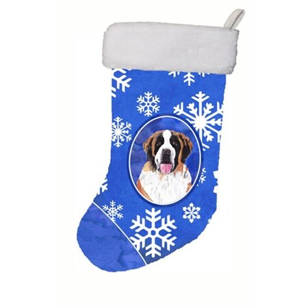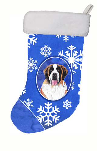 Caroline's Treasures SC9382-CS Saint Bernard Winter Snowflakes Christmas Stocking SC9382, Large, Multicolor