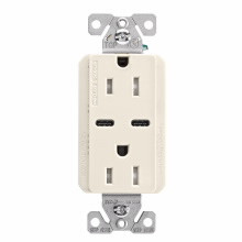 Eaton TRUSBC15LA-BOX USB-C Charger with Duplex Receptacle, Light Almond