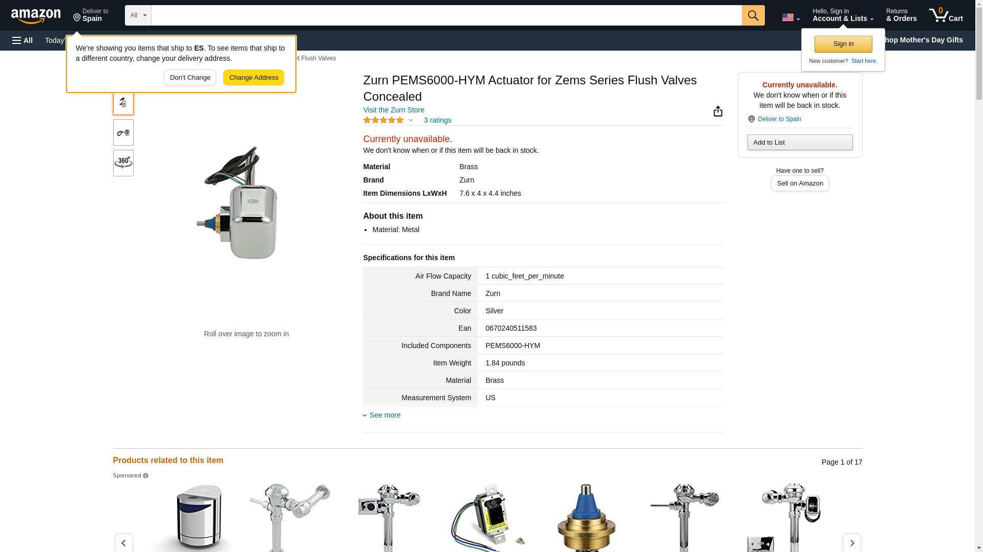 | Feature | Price For: Each Fits Brand: Zurn For Use With Mfr. Model Number: ZEMS6000AV-HET, ZEMS6000AV-HET-IS, ZEMS6000AV-WS1, ZEMS6000AV-WS1-IS Item: Actuator Assembly Includes: Motor Assembly Type: Flush Valve Material of Construction: Metal and Wire For Use With Item Number: 38ZL54, 38ZL71, 38ZL55, 38ZL72 Country of Origin (subject to change): Taiwan |