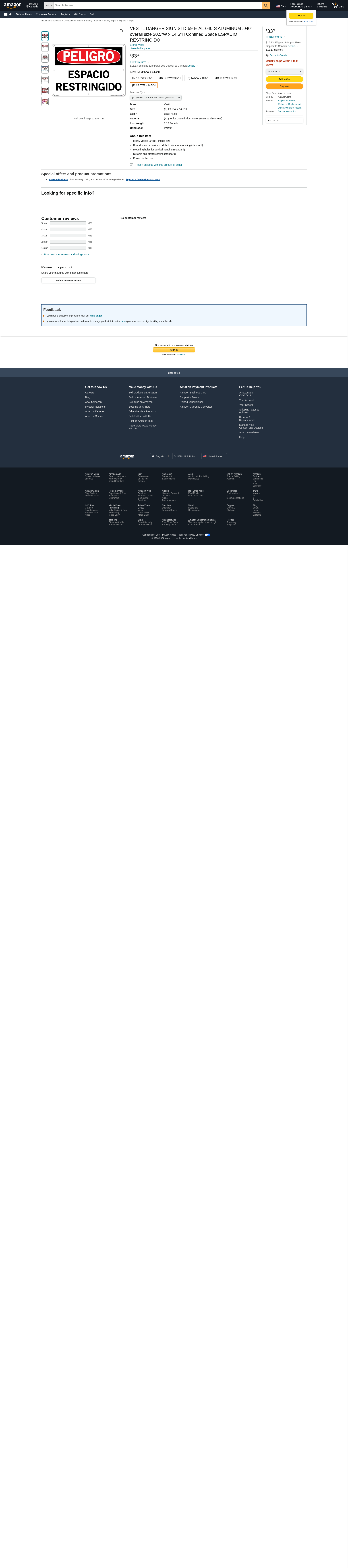 VESTIL DANGER SIGN SI-D-59-E-AL-040-S ALUMINUM .040" overall size 20.5"W x 14.5"H Confined Space ESPACIO RESTRINGIDO