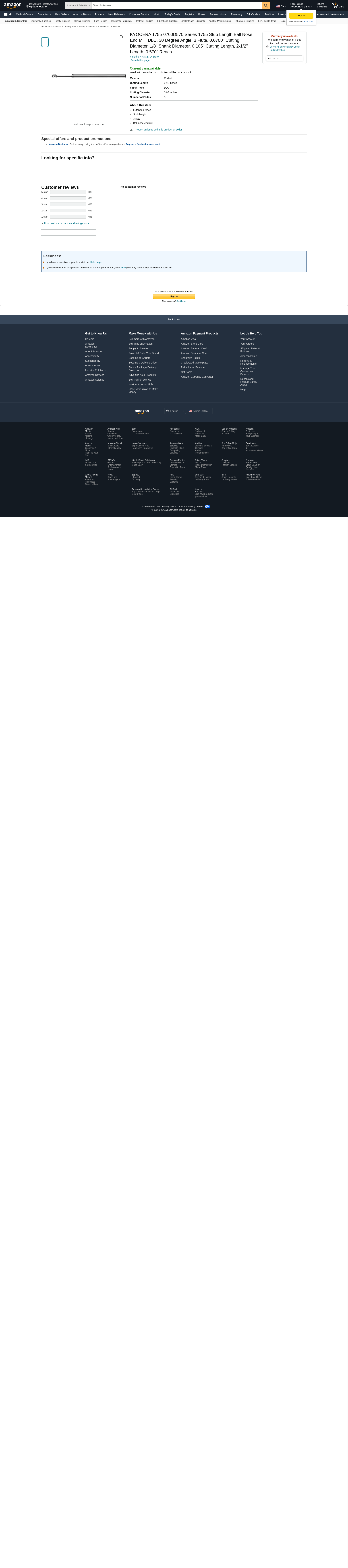 KYOCERA 1755-0700D570 Series 1755 Stub Length Ball Nose End Mill, DLC, 30 Degree Angle, 3 Flute, 0.0700" Cutting Diameter, 1/8" Shank Diameter, 0.105" Cutting Length, 2-1/2" Length, 0.570" Reach