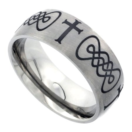 Titanium 8mm Wedding Band Celtic Knot Ring Domed Moline Crosses Brushed Finish Comfort Fit, sizes 7 - 14
