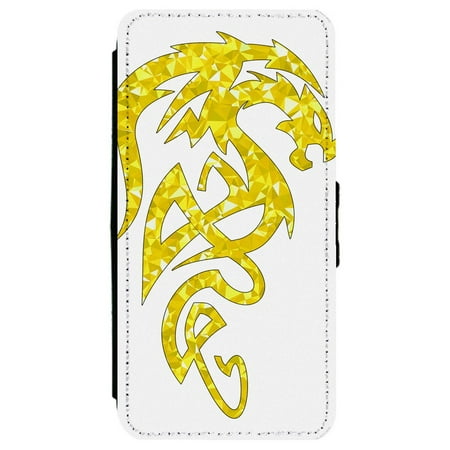Tribal Tattoo Style Yellow Dragon Pattern Samsung Galaxy S8 Leather Flip Phone Case. Create a statement with this incredibly detailed High Definition color image case with a black leather wallet! This case features a full warp around case to protect every angle of your phone. Your phone is protected by a soft fabric inside as well as a custom fit hard PC liner which holds your phone snug and safe. Even more, our case includes a simple magnetic closure and 3 pocket holders for credit cards! We also offer custom images too! Just click the following link to see our custom cases. You can add any picture you would like; your wonderful dog, your slinky cat, a newborn baby, a wonderful vacation, anything! This is an image only. There are no raised surfaces or 3D elements. This is an image printed onto the case.