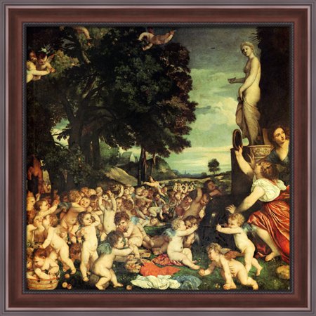 The Worship of Venus 28x28 Large Walnut Ornate Wood Framed Canvas Art by Titian