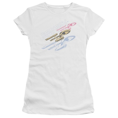 Trevco Star Trek-Retro Tri Enterprise - Short Sleeve Junior Sheer Tee - White, 2X