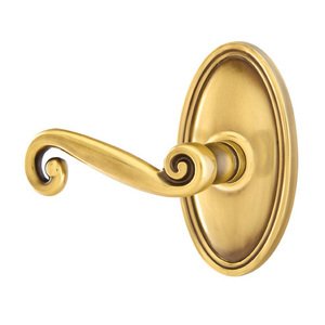 Brass Classic Hardware Collection - Privacy Left Handed Rustic Door Lever With Oval Rose in French Antique Brass by Emtek Hardware - 8220RUS7-LH-234 | MyKnobs