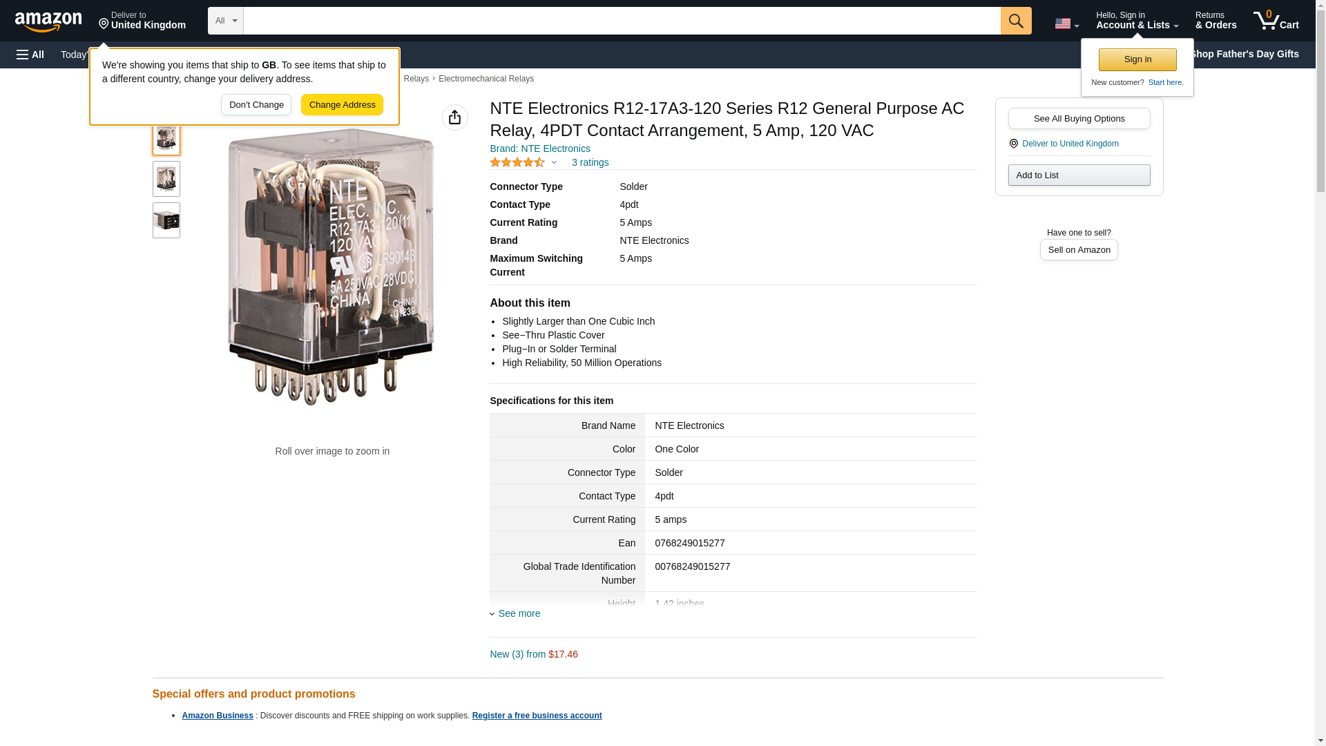 - NTE ELECTRONICS R12-17A3-120 (6PACK) 40007010146