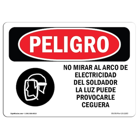 OSHA Danger Sign, Do Not Watch Arc Spanish, 10in X 7in Aluminum