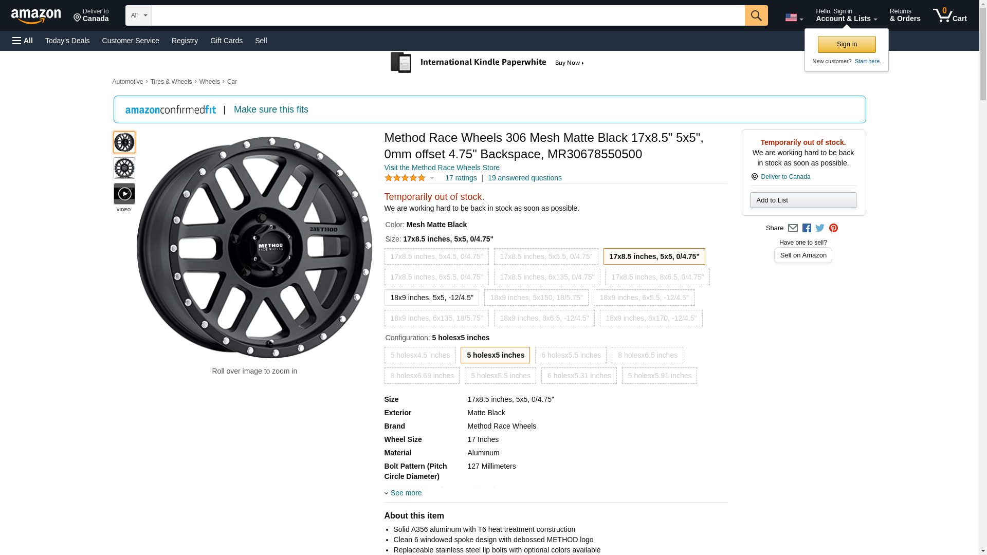 Method Race Wheels 306 Mesh Matte Black 17x8.5" 5x5", 0mm offset 4.75" Backspace, MR30678550500