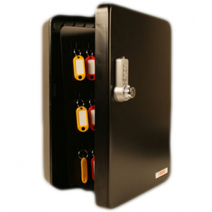 - DURABLE - The Combi-Cam-Ultra is durable long-lasting. KeyGuard Key Cabinet features a heavy-duty 16 gauge steel body with a matte black finish & 48 steel key hooks on a continuous piano hinge.