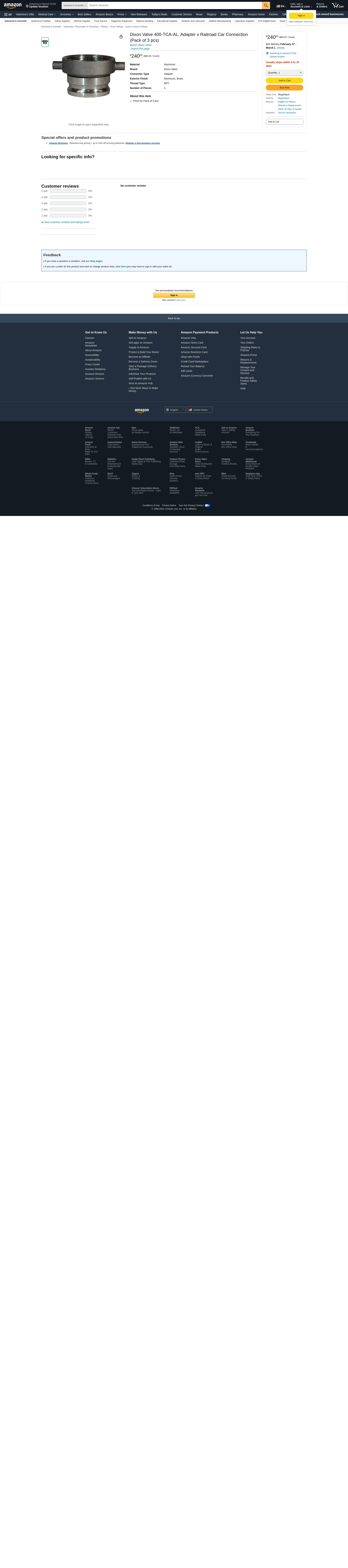 Dixon Valve 400-TCA-AL, Adapter x Railroad Car Connection (Pack of 3 pcs)