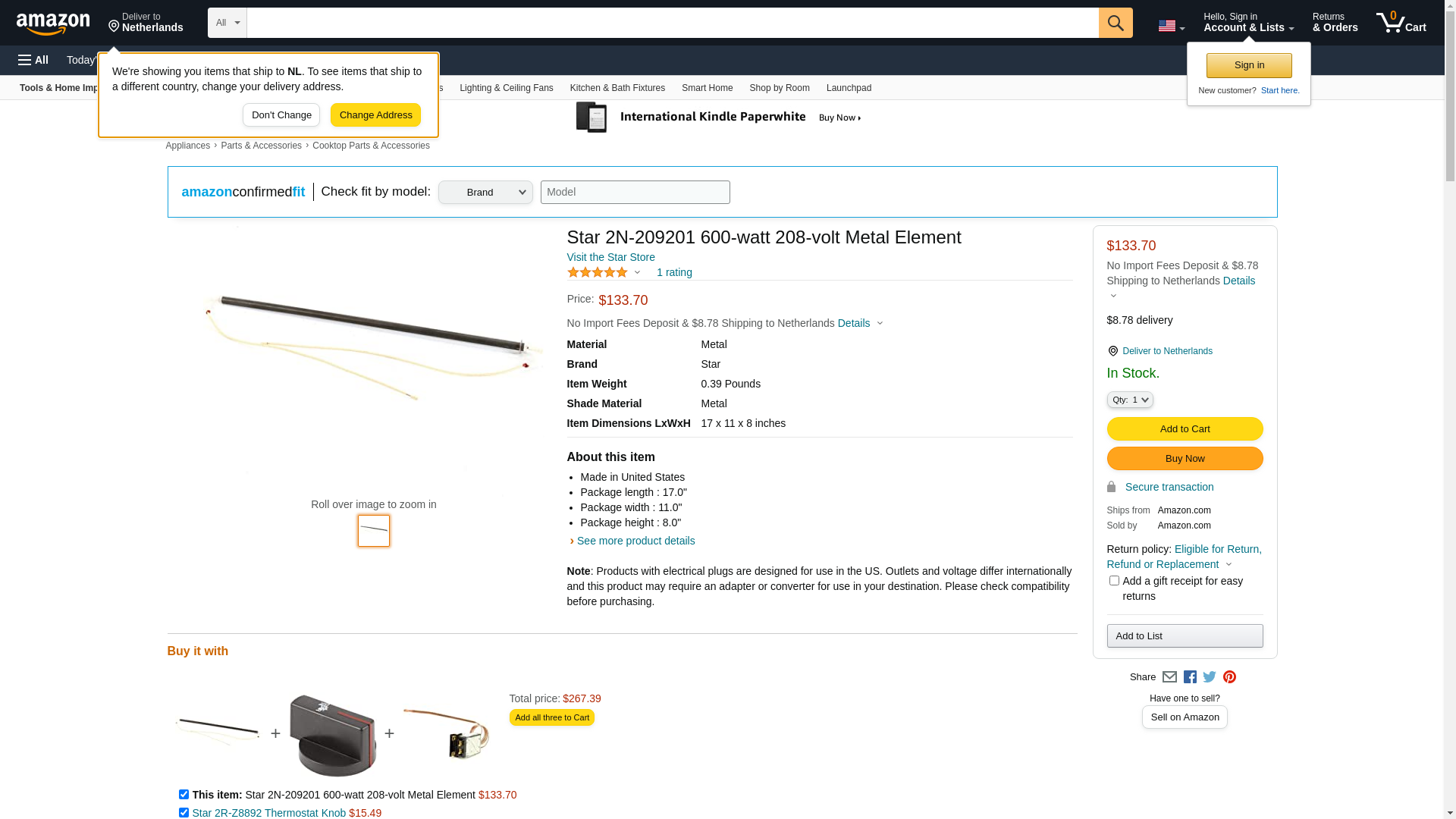 ![]() midwestapplianceparts.com | 2N-209201-STA-P | 1 | Current Unavailable - No ETA Available | 1 | 1 @ $259.65 |