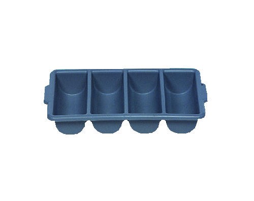 Four-compartment bin is ideal for storage or dispensing cutlery and condiment packets. Ribbed design and special resin material provide strength. Has comfortable handles. Dishwasher safe; NSF certified. Dispenser Type: Utensils/Condiments; Material(s): Pl