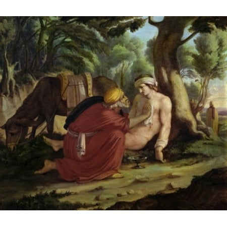 Carl Julius Milde Stretched Canvas Art - The Merciful Samaritan, Carl Julius Milde (1803-1875/German) - Large 24 x 36 inch Wall Art Decor Size.