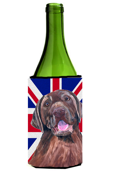 Caroline's Treasures SC9841LITERK Labrador with English Union Jack British Flag Wine Bottle Hugger Bottle Cooler Sleeve Hugger Machine Washable Collapsible Insulator Beverage Insulated Holder