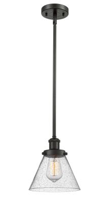INNOVATIONS LIGHTING 916-1S-OB-G44-LED BALLSTON LARGE CONE 1 LIGHT 8 INCH SEEDY GLASS MINI PENDANT, OIL RUBBED...