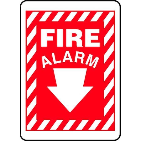 Accuform MFXG448VA Aluminum Safety Sign, Legend "FIRE Alarm (Arrow Down)", 10" Length x 7" Width, White on Red