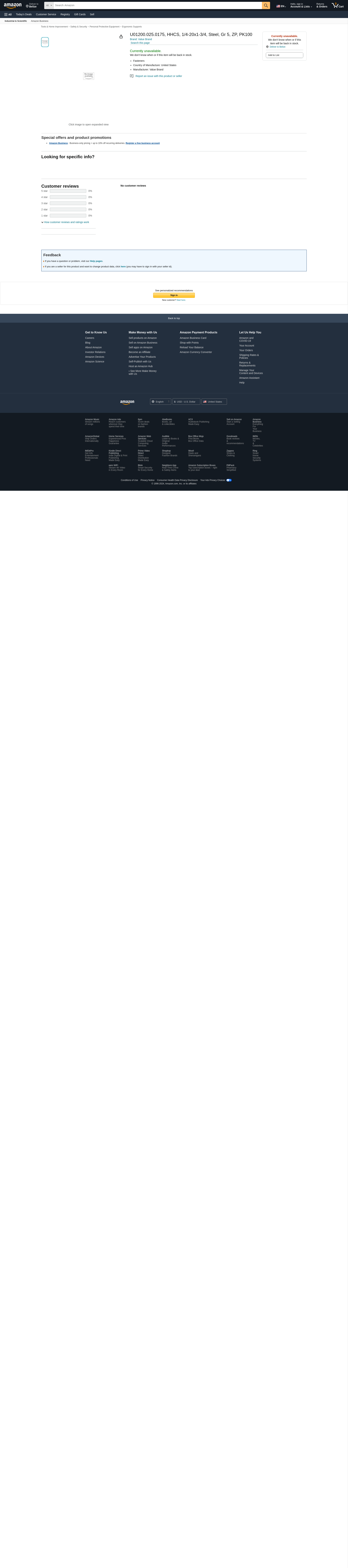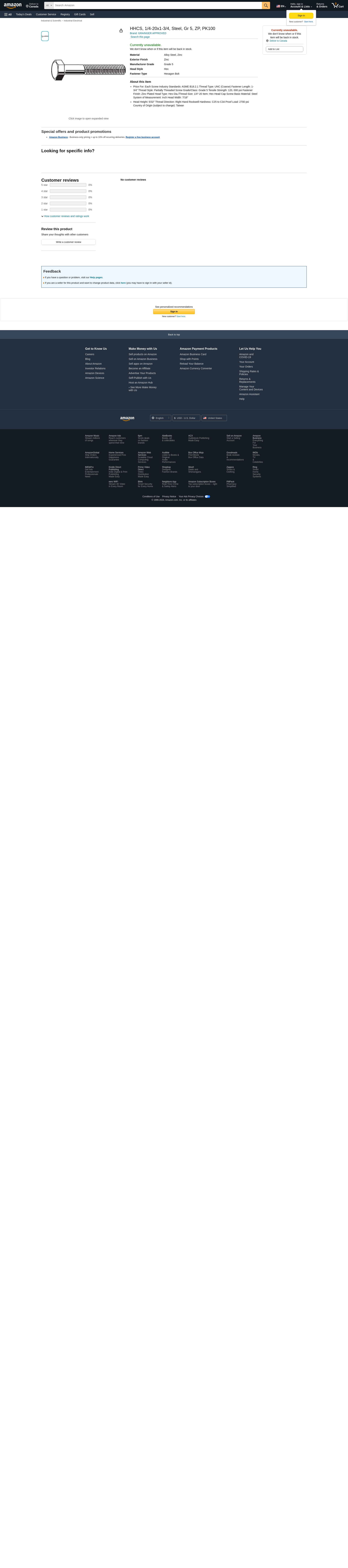 Value Brand, U01200.025.0175, HHCS, 1/4-20x1-3/4, Steel, Gr 5, ZP, PK100