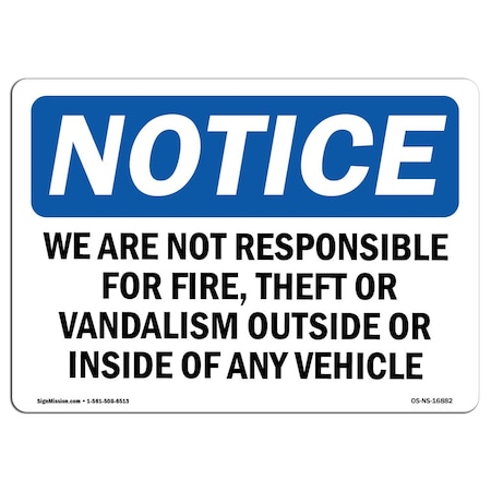 OSHA Notice Sign - Notice We are Not Responsible for Vandalism Vehicle | Aluminum Sign | Protect Your Business, Work Site, Warehouse | Made in The USA