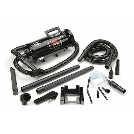 Vac N'Blo 4.0 Peak Horsepower Portable Vacuum cleaner/blower with accessories, Includes Dual Power Unit with dual mounted legs and cord storage wrap, wall/table mounting bracket, 2-Flexible 6 foot hoses, 2-20" Extension Wands, Deluxe 4 Piece Micro Detailing Attachments, Shoulder Strap, Blower Nozzle, Inflator Adapter, Pik-All Upholstery Nozzle, Dust Brush, Crevice Tool. Assembled with 12 ft. Grounded Cord Set.