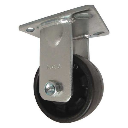 RWM Casters 46 Series Plate Caster, Rigid, Nylon Wheel, Roller Bearing, 800 lbs Capacity, 4" Wheel Dia, 2" Wheel Width, 5-5/8" Mount Height, 4-1/2" Plate Length, 4" Plate Width