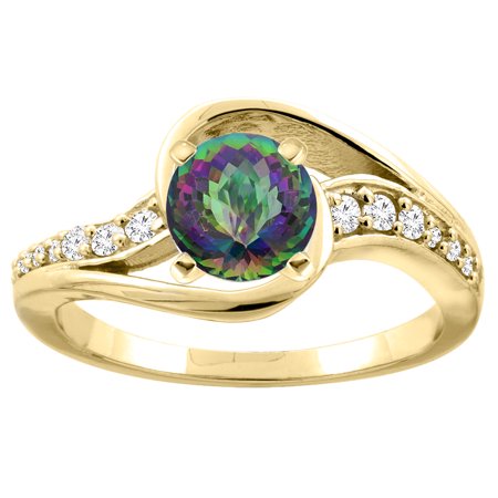 14K White/Yellow Gold Natural Mystic Topaz Bypass Ring Round 6mm Diamond Accent, sizes 5 - 10