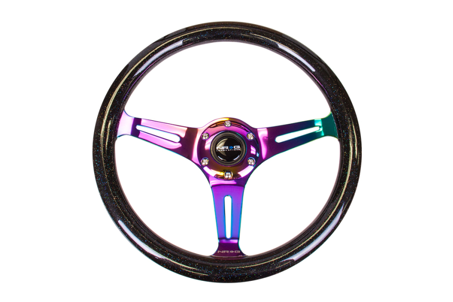 NRG Innovations ST-015MC-BSB"Galaxy" Classic Wood Grain Wheel (350mm 3 Neochrome spokes - Black Sparkled Color)