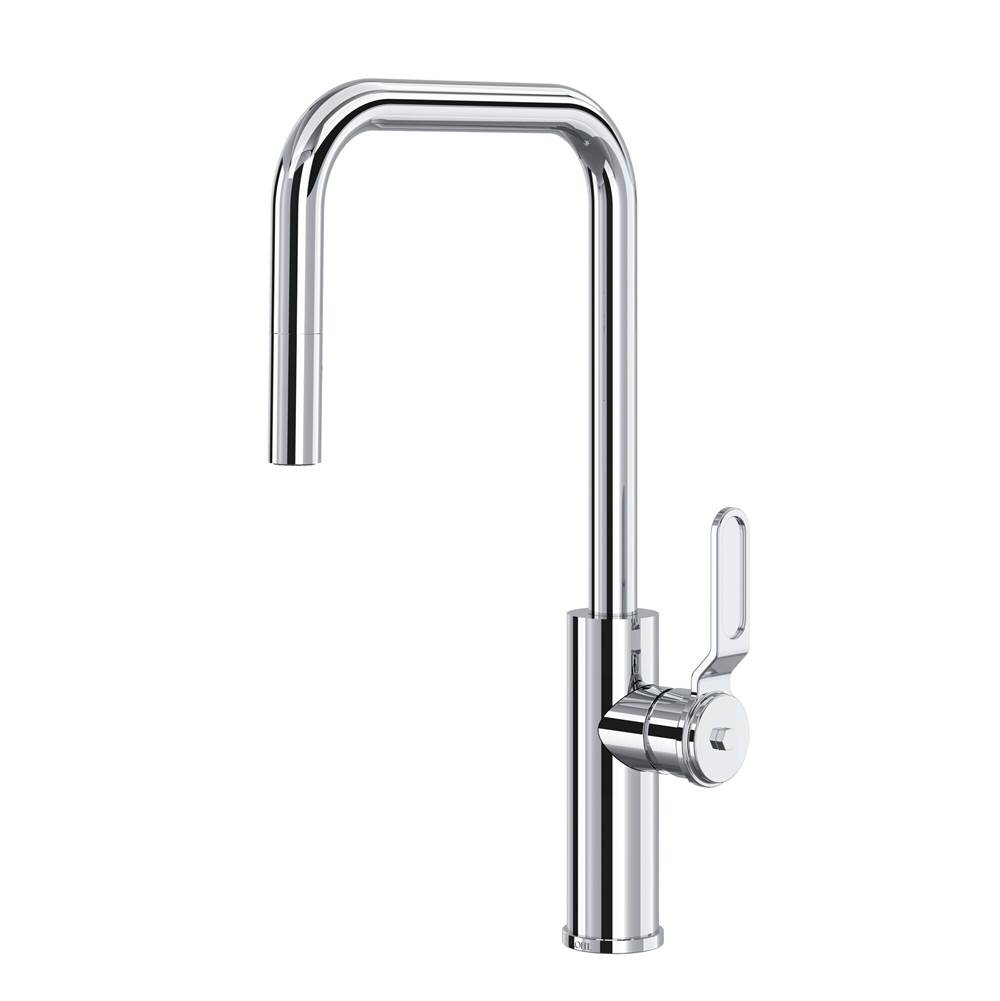 ROHL MY56D1LMAPC MYRINA 16 3/4 INCH SINGLE HOLE PULL-DOWN KITCHEN FAUCET WITH U-SPOUT, POLISHED CHROME