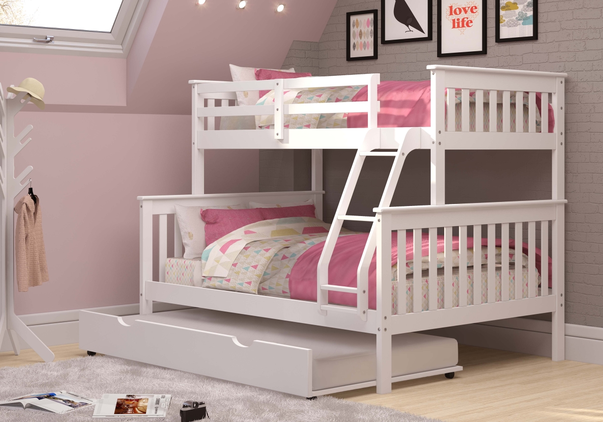 Donco Kids PD-122-3W-503 Twin Over Full Size Mission Bunk Bed with Twin Trundle - White