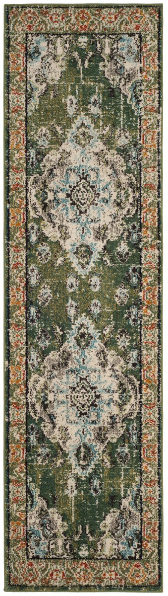 Safavieh MNC243F-214 Monaco Power Loomed Runner Rug, Forest Green & Light Blue - 2 ft.-2 in. x 14 ft.